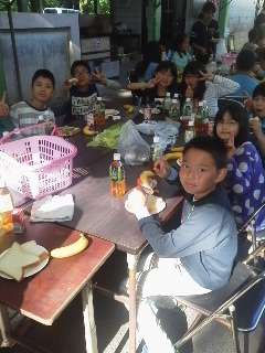 朝食が始まりました。みんなよくたべます。みんなで食べるとよけいに美味しく感じますね。