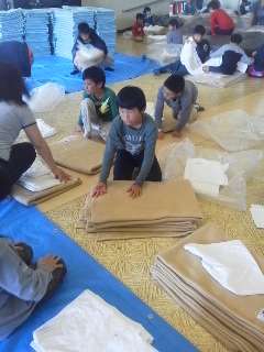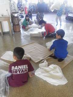 寝具を返却します。次の人が気持ちよく使えるように丁寧にたたみます。