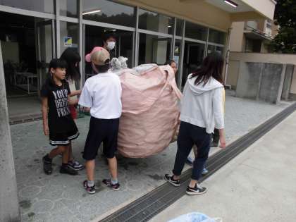 登校時にたくさんのアルミ缶の入った袋を持ってきてくれました。