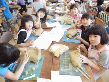 粘土を一生懸命にひねって、個性豊かな動物ができあがりました。それぞれの作品に味があります。