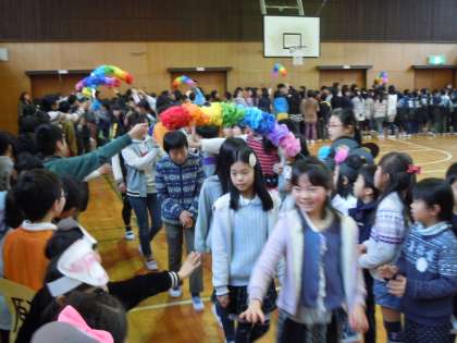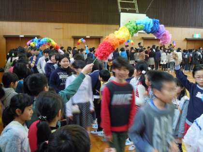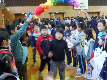 最後は在校生のアーチをくぐって6年生が退場しました。