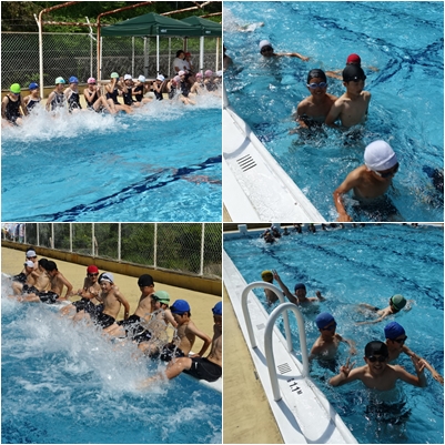 1時間目からさっそく6年生が水しぶきと歓声を上げていました。