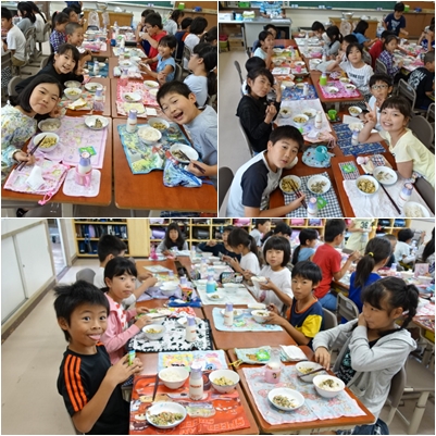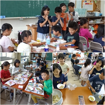 たまごとじ、五色あえ、麦ごはん、牛乳、ふりかけでした。