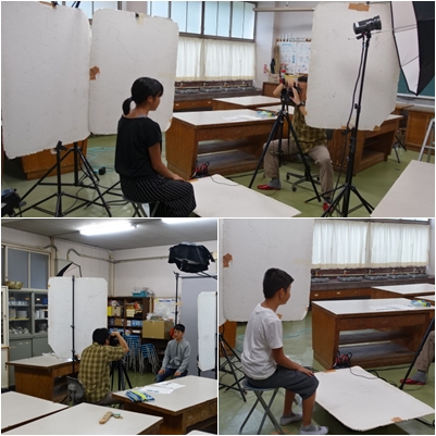 6年生が卒業アルバム用の個人写真を撮影しています。