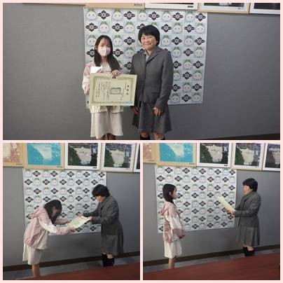 6年1組 川村 涼さんが「税に関する絵はがきコンクール」において優秀な作品であることをたたえ、表彰されました。
