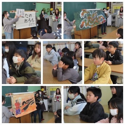 「やまたのおろち」の読み聞かせがありました。迫力ある物語に、子どもたちは一気に引き込まれていました。お話の後は、手作りの紙芝居を使って三種の神器についての解説も。瀬戸市からほど近い熱田神宮や伊勢神宮とのつながりが紹介されると、「行ったことある!」と声が上がる場面もありました。神話をきっかけに、地域の歴史や文化に興味を広げる貴重な時間となりました。