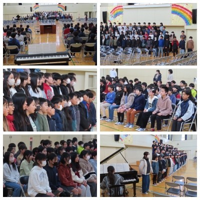 いよいよ来週に迫った卒業式。体育館では、5年生と6年生による合同練習が行われていました。呼びかけや歌声が重なり合うたび、学校の伝統と想いが上の学年から下の学年へと受け継がれていく「心のバトンパス」が行われているようです。