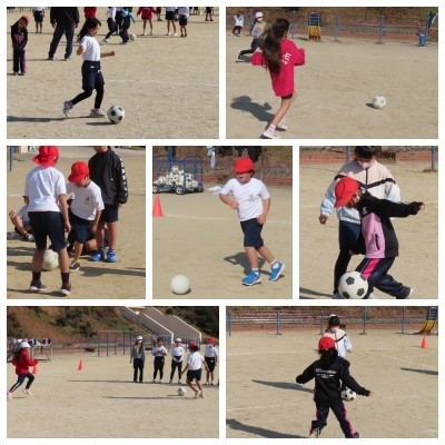 足でボールをけり、友だちと取り合いながら活動する中で、体の使い方を工夫したり、周りをよく見て動いたりする姿が見られました。思うようにいかない場面もありましたが、声をかけ合い、何度も挑戦することで、運動の楽しさや友だちと関わる喜びを感じていました。