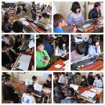 「聖者の行進」の合奏に挑戦していました。リコーダーの指使いを丁寧に確認し、キーボードの軽快な伴奏に合わせて一生懸命演奏しています。クラス全員の音が重なり、一つの曲になる喜びを肌で感じているようでした。