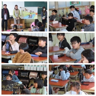 「おしょうとこぞう」の読み聞かせをしてくださいました。和尚さんと小僧さんのユーモラスなやり取りや、あっと驚くお話の展開に、子どもたちは身を乗り出して聞き入っていました。教室中が笑顔いっぱいに包まれた、心温まる素敵な朝の時間となりました。なんじゃもんじゃの皆さん、ありがとうございました。
