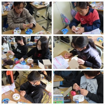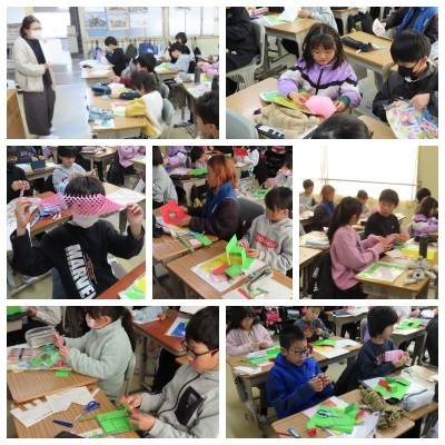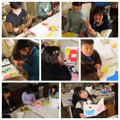 セットの袋を開ける手にワクワク!メッセージカード作り(4青組図工)