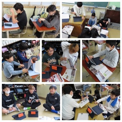 グループごとに国を選び、その国の特徴を調べています。写真やデータを活用しながらまとめ、今後の発表に向けて準備を進めています。友達と協力しながら調べることで、学びを深める姿が見られました。