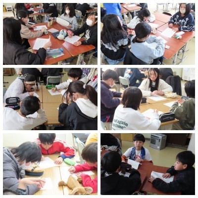 友だちの「いいところ」を見つけ合いました。互いに伝え合うことで、自己肯定感が高まり、笑顔があふれる時間になりました。これからも温かい言葉で支え合いながら成長していきます。 -