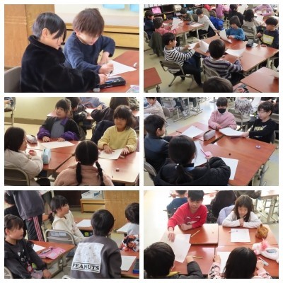 学年間でグループを作り、同じ学年の友だちと交流しました。「どっちが好き」の活動を通して、友だちとの関わりを深める楽しい時間となりました。学年ごとの個性が光り、どの教室も笑顔と笑い声にあふれていました。 -