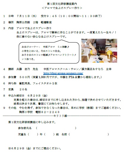 PTA文化研修部による講座を開催します。