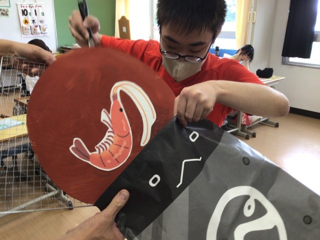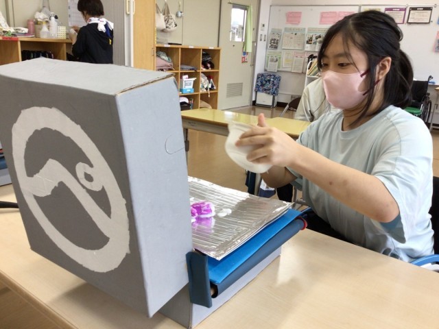 授業では修学旅行の事前学習でえびせんパークでの大きなおせんべい作り「ぺったん」の体験をしました。