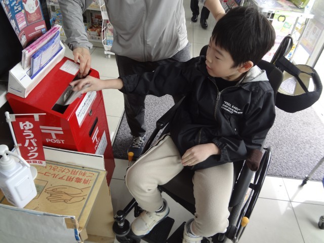 小学部 3年生 校外学習 公開日 2025/10/21 更新日 2025/10/21 学校日記 3年2・3組は、3時限にコンビニエンスストアの店内ポストにさくらんぼフェスティバルの招待状を出しに行きました。コンビニエンスストアのポストは、ちょうど手の届く高さに入れ口がありました。自分でぐっと腕に力を入れて招待状を入れたり、入れる瞬間にパッと手を放せたりしました。みんなさくらんぼフェスティバルを見に来てくれるといいな。 いいね(3)