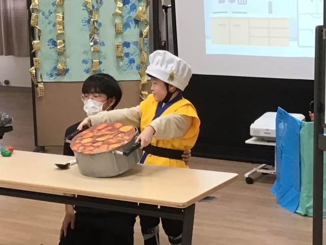 小学部 3年2・3組発表 その2 公開日 2025/11/12 更新日 2025/11/12 学校日記 その2は、竜宮城でうらしま三兄弟にフルーツとカレーライスをもてなしたり、歌をプレゼントしたりする場面の様子です。 いいね(1)