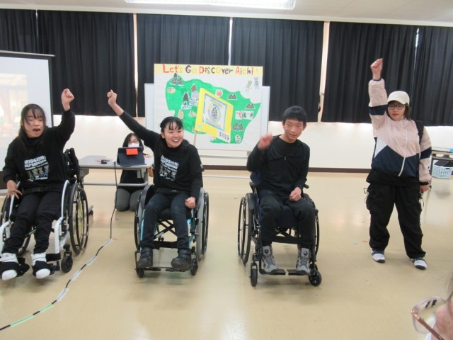 高等部1年1組 発表を終えて 公開日 2025/11/26 更新日 2025/11/26 学校日記 11月12日(水)にさくらんぼフェスティバルで 高等部1年1組が[Let’s Go! Discover Aichi!]の発表をしました。 みんな、最初はちょっと緊張したけど最後は楽しく発表できて嬉しかったです。 いいね(0)