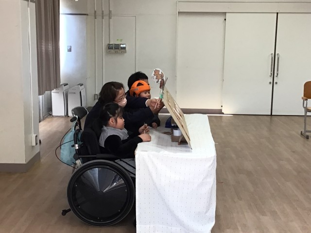 小学部 読み聞かせ会 公開日 2025/11/27 更新日 2025/11/27 学校日記 11月26日(水)2、3時限におはなしぶらんこさんによる読み聞かせ会がありました。2時限は、3・4年1組と5年1組によるペープサート劇「3びきのこぶた」の発表もありました。おはなしぶらんこさんには、「バムとケロの日曜日」「もったいないばあさん」「めっきらもっきらどおんどん」「ばけばけばけばけばけたくん」を読んでいただきました。フルートの演奏もあり、楽しい時間を過ごすことができました。 いいね(0)