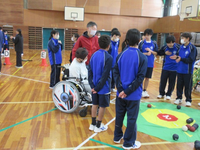 11月21日(金)5・6時間目に光陵中学校1年生とのボッチャ交流がありました。お互い協力し合い、高得点が入ると大盛り上がりしました!楽しい時間を過ごすことができました。