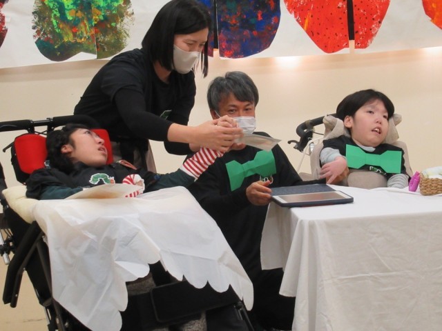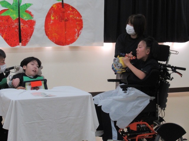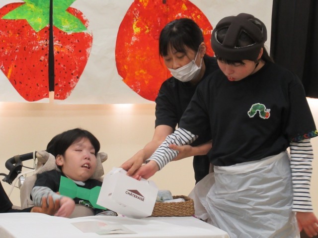 高等部1−2・3−1発表‼️② 公開日 2025/11/28 更新日 2025/11/28 学校日記 「はらぺこレストラン」にやってきたお客さんに、ウエイトレスさんがおもてなしをしました。 最後はあおむしからちょうちょに成長し、たくさんの「かわいい」という声とともに、たくさんの笑顔の花が咲きました! いいね(0)