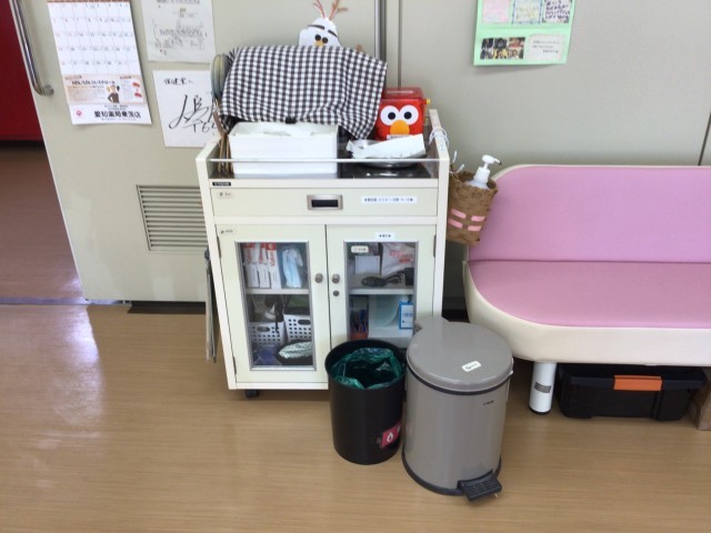 看護師さんたちは…医療的ケアが必要な子たちの為に保健室にいます。電話が入るとカートを引いて急いでケアが必要な子の元へ駆けつけます。