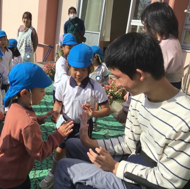 高等部 幼児たちと再会できました! 公開日 2025/12/16 更新日 2025/12/16 学校日記 はちまん幼稚園の幼児たちが、お散歩の途中会いにきてくれました。 短い時間でしたが、お礼状を渡したり、色んな話をしたりしてお互い楽しい時間を過ごすことができました。 いいね(2)