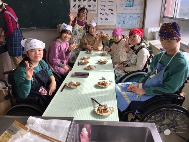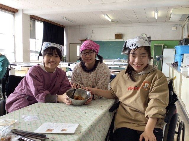 高等部1、2年生 調理実習 公開日 2026/02/10 更新日 2026/02/10 学校日記 1月20日に高等部1、2年生で調理実習をやりました。 生姜焼きとてりかけとわかめご飯を作りました。 生姜焼きは生のお肉をほぐしながら炒めることが大変でした。 てりかけは鳥もも肉と調味料と片栗粉を袋に入れて振るのが大変でした。 とても美味しくできました。 いいね(1)