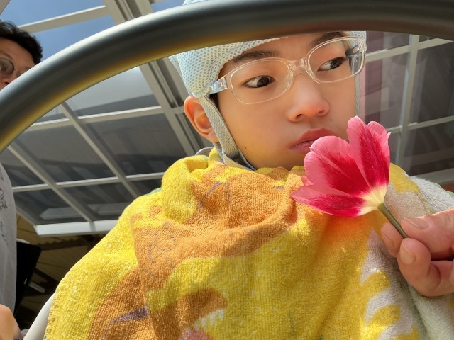 中学部2年2組は、生活単元学習で身近にある春を探しに行きました。チューリップやタンポポ、ダンゴムシを見つけると「あ!」という表情を見せていました。暖かい日差しの中で気持ちよく歩くことができました。