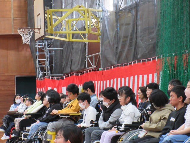 4月21日(火)に光陵中学校の体育館でミニコンサートがあり、中学部・高等部が参加しました。オーボエとピアノによる「さんぽ」や「ユーモレスク」などの演奏があり、「この曲知ってる!」と顔を上げて笑顔を見せる様子やきれいな音色に聴き入る様子が見られました。みつば小学校の校歌も披露され、小学生の歌声で会場が明るい雰囲気に包まれました。