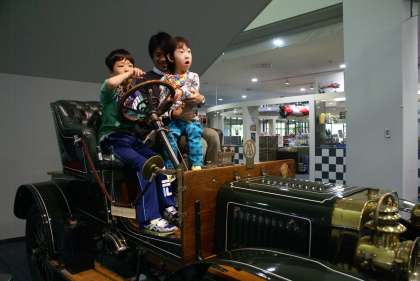テレビで見かける古い車や最新のはいぶりっドカーまで、たくさんの車が展示してありました。中でも好評だったのが実際に運転席に乗ることができる車でした。先生と一緒に座って気分は運転手!あいにくの雨模様でしたが充実した一日になりました。