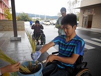 バケツ稲づくり「稲刈り」 公開日 2016/11/16 更新日 2016/11/16 学校日記 10月17日(月)に、JAあいち尾東の方の指導を受けて、稲刈りを行いました。生徒たちは鎌を使って、「よいしょ〜」と力いっぱい稲を刈りました。今後、脱穀ともみすりを行い、収穫した米は1月の給食で提供される予定です。自分たちで育てた米は、きっと格別な美味しさでしょう。 いいね(0)
