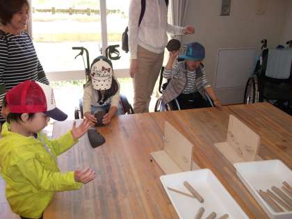 4月28日(金)、愛・地球博記念公園(モリコロパーク)に行きました。室内の遊具で遊んだり、粘土遊びをしたりしました。すべり台は気持ちよかったです。粘土遊びは陶器を作る粘土で、手形を作りました。粘土の感触を楽しみました。粘土がひやっと冷たかったです。遊んだ後、大好きなおかずが入った「好き好き弁当」をおいしく食べました。