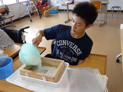 高等部 1年1組、2・3年生1組 作業学習「紙すき作業」