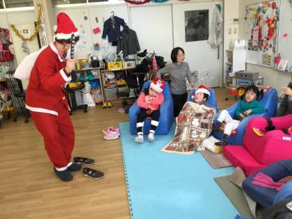 12月15日(金)に、小学部2年生と4年生の合同クリスマス会が行われました。まず始めに行ったのは「ジングルベル」の合奏。次に、ボウリング対決。最後にサンタさんが登場してプレゼント交換会となりました。みんなの楽しそうな笑い声に誘われてやってきたサンタさん。突然の訪問に子どもたちは驚いた様子で泣いてしまう子どももちらほら…。しかし、プレゼントを1人ずつもらって最後はみんなで記念撮影…。思い出に残るクリスマス会となりました。