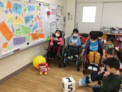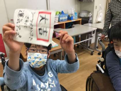 3年生の自立活動(たいけん)の授業では、冬の遊びを楽しんでいます。その中の一つが「思い出すごろく」。みんなの冬休みの日記をもとにしたすごろくのマスを作りました。「はつもうでに行っておみくじをひく」「お年玉をもって買い物へ。2マスすすむ」「夜更かしをして朝起きれない〜。1回やすみ」など、内容は盛りだくさん!自分の思い出のマスに止まって、「ぼくの思い出だ!」と喜ぶ子、ふりだしにもどるに止まって、「も〜残念。」と悔しがる子、一番にゴールしてバンザイをする子、など様々な様子で楽しむ姿が見られました。思い出話に花が咲いたね♪