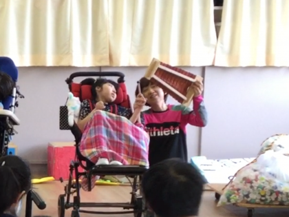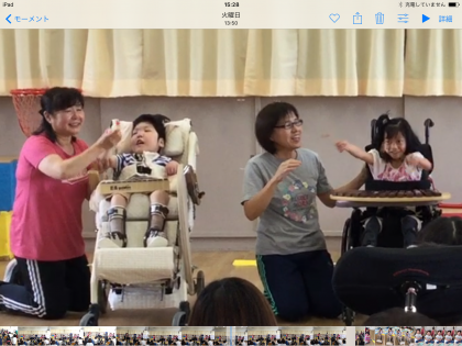 7月3日(火)の集会で、5年生は音楽発表をしました。「こげよマイケル」の曲に合わせて入場した後、「リボンのおどり」の曲に合わせてそれぞれ好きな色のリボンを振ったり、木琴や鉄琴の演奏をしたりしました。音楽の時間に何度も練習をしたので、当日はばっちり大成功。小学部のみんなの声援を受けてやる気もみなぎり、全員本番が一番輝いていました☆