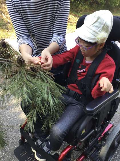 1・2年生で南公園へ校外学習に出掛けました。みんなの願いが通じて当日はとてもいい天気になり、先生と一緒にすべり台で遊んだり、松ぼっくりやどんぐりを拾ったりしました。あっという間に1時間が経ってしまい、「もっと遊びたい!」と声を出して猛アピールしていた子どもたちでした。拾った松ぼっくりは全部で100個以上!これからの学習で作品作り等に活用する予定です。