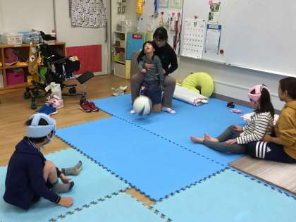 今月は新しく「ラジオ体操第2」に挑戦しています。先生の見本を見ながらとても上手に体を動かしています。
