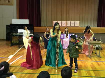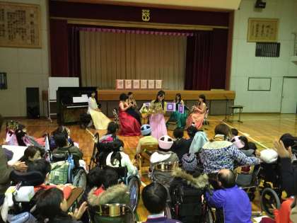 小学部でEnsemble Violet(アンサンブル・ヴィオレ)のみなさんによる木管五重奏のコンサートが開かれました。瀬戸市出身のピアニストもゲストとしてお迎えし、とても華やかな演奏を聴くことができました。大きな木管楽器“ファゴット”との身長比べをしたり、演奏の中で一つ一つの楽器の音色や特徴についても教えてもらったりして児童は興味津々。演奏者の方たちのきらびやかなドレスに目が釘付けになる児童もいました。一緒に参加した萩山小学校の児童と共に素敵な時間を過ごすことができました。