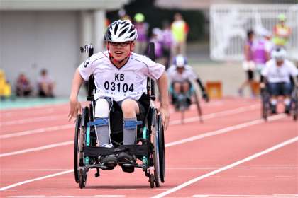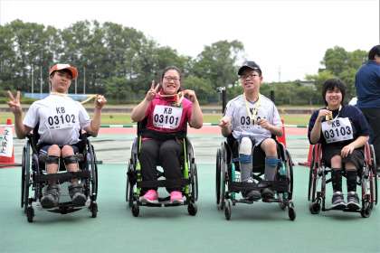 本校からは4名の生徒が車椅子50m、100mトラック競技に出場しました。当日は、真夏日となりとても暑い一日でしたが、皆自分のもっている力を十分に発揮し、全員、金メダルを獲得することができました。