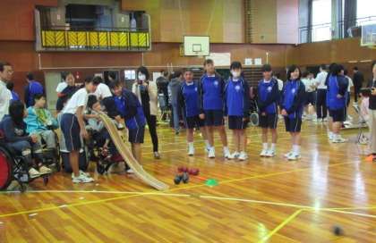 光陵中学校との授業交流「ボッチャ」 10月29日 公開日 2019/10/29 更新日 2019/10/29 学校日記 光陵中学校1年生と本校中学部との授業交流で「ボッチャ」をしました。 ゲームは、投げ方を工夫したり、作戦を立てたりしてみんな盛り上がっていました。最後に光陵中学校の生徒代表から「パラリンピックのボッチャは、日本を応援しましょう」との言葉がありました。 パラリンピックの正式種目「ボッチャ」を体験したことで、来年の東京パラリンピックに興味をもってくれるとうれしいです。 いいね(0)