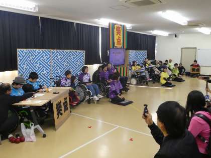 また午後は、萩山校舎の体育館に全員集まり、PTAの企画による「さくらんぼひろば」を楽しみました。「マイうちわづくり」をしたり、「ボッチャスコア100」のゲームをしたりして、盛り上がりました。これまで、たくさんの準備をしていただいたPTAの皆様ありがとうございました。