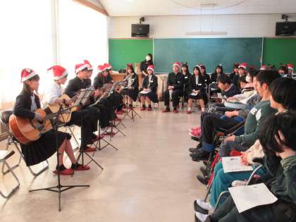 最後に、ギターの演奏に合わせて「赤鼻のトナカイ」「ジングルベル」「365日の紙飛行機」を全員で歌いました。