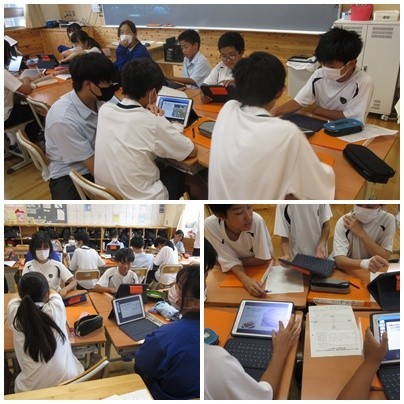 9年生は、1学期から取り組んできた「にじの丘版 瀬戸市次期将来計画」のミニ発表会を行いました。班ごとに考えた事業計画をクラスの枠を超えて発表し合い、他クラスの仲間から良い点や改善点をもらいました。今後は内容をさらに高め、プレゼンにまとめて市の総合政策課の方にも聞いていただく予定です。