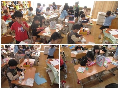 1年生が図工「たいせつボックス」に取り組んでいました。