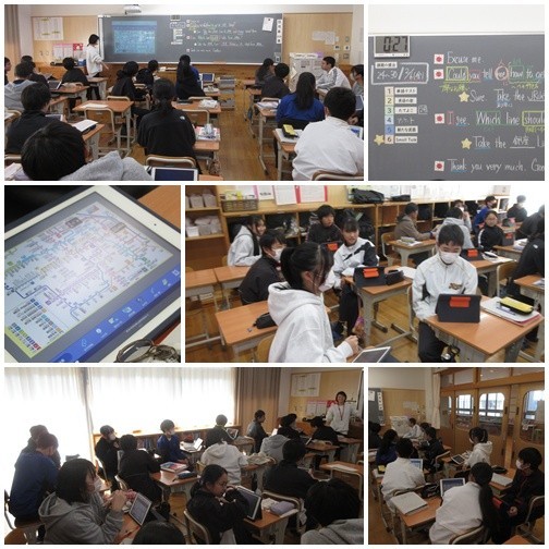 鉄道の路線図を見ていたので、何の授業かとのぞいてみると8年生の英語の授業でした。