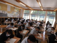 8年生の家庭科の授業です。ティッシュケースを作っていました。今回のポイントはボタンを正しくつけることです。