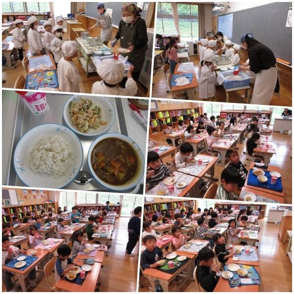 4月23日(木)1年生にとっては、にじの丘学園で初めての給食でした。メニューは、麦ごはん、カレー、発酵乳、ツナサラダです。みんな、「おいしい!」「おかわりしたい!」など大好評でした。学期のはじめや節目の時には、子どもたちに人気のメニューを栄養の先生方が考えて出してくださっています。